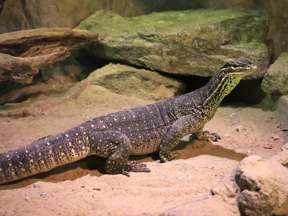 … dass der Arguswaran sehr aktiv ist und auf Futtersuche täglich bis zu sechs Stunden unterwegs ist.