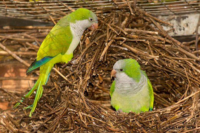 Der Mönchssittich baut als einzige Papageienart große Gemeinschaftsnester aus Zweigen. Jedes Nest ist in „Wohnungen“ unterteilt, die jeweils von einem Paar bewohnt werden. Jede Wohnung besteht wiederum aus einzelnen Kammern zum Schlafen und Brüten und kann deshalb das ganze Jahr über bewohnt werden. Zur Brutzeit wird das Nest repariert und ausgebaut. Die meisten anderen Papageien sind Höhlenbrüter.